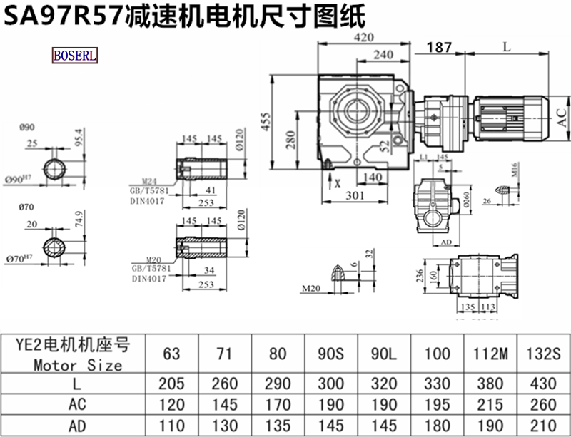 SA97R57DRN90M4_SA97R57DM80M4_SA97R57DVE100M4_SA97R57DR112M4減速機電機型號大全